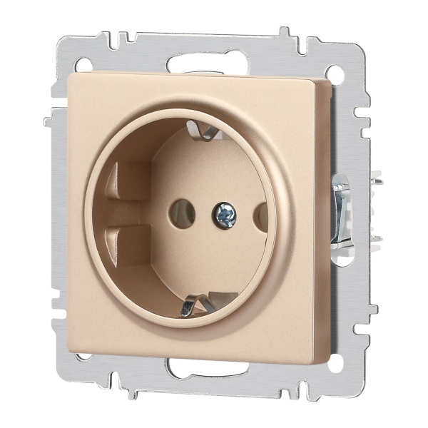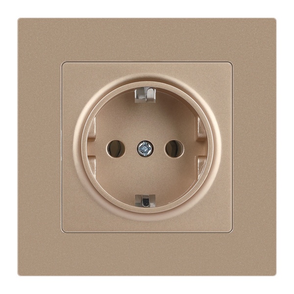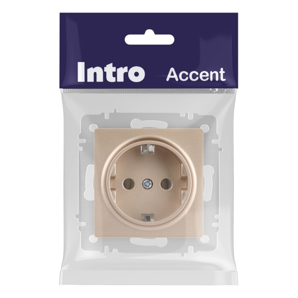 Встраиваемая электрическая розетка Интро Акцент с заземляющим контактом, цвет шампань Б0063690