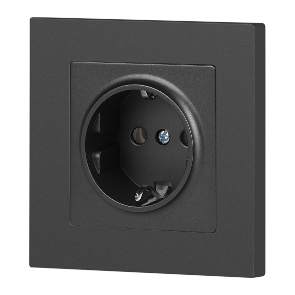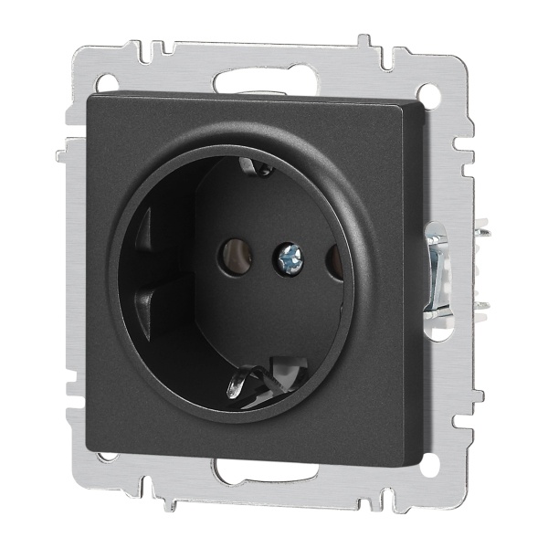Встраиваемая электрическая розетка Интро Акцент с заземляющим контактом, цвет графит Б0063697