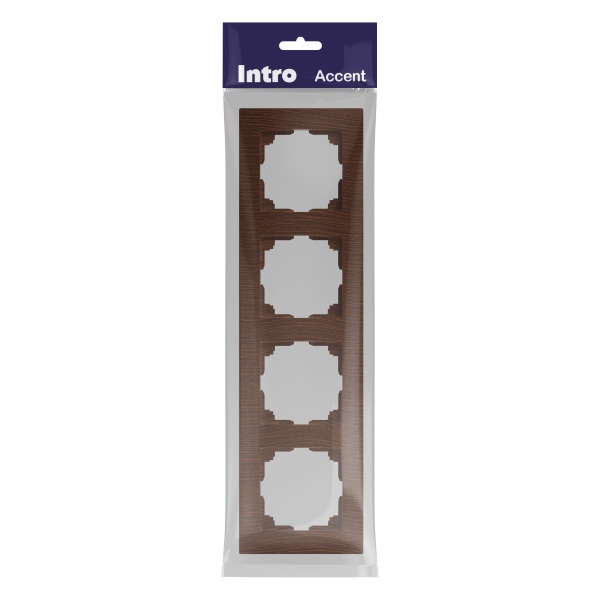 Рамка для механизмов на 4 поста Intro Accent, цвет венге – стильный элемент электрофурнитуры, который добавит интерьеру элегантность и глубину. Оттенок "венге" с выразительной древесной текстурой придает изделию благородный и роскошный вид.