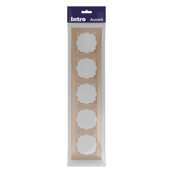 Рамка для механизмов на 5 постов Intro Accent (шампань) – это стильный и современный аксессуар, предназначенный для оформления электрических выключателей и розеток. Изготовлена из качественного материала с изысканным покрытием цвета "шампань", которое придаст интерьеру элегантность и утонченность.