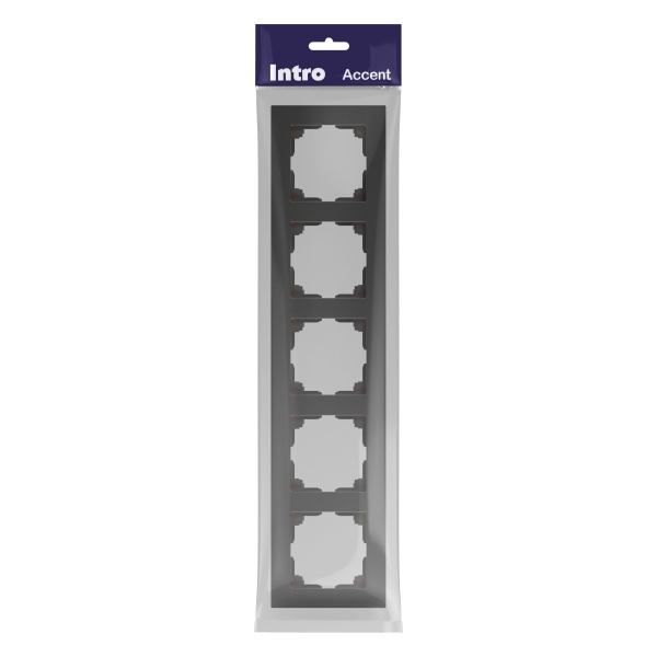 Декоративное пятипостовое обрамление для электроустановочных механизмов скрытой установки, Интро Акцент цвет графит Б0063733