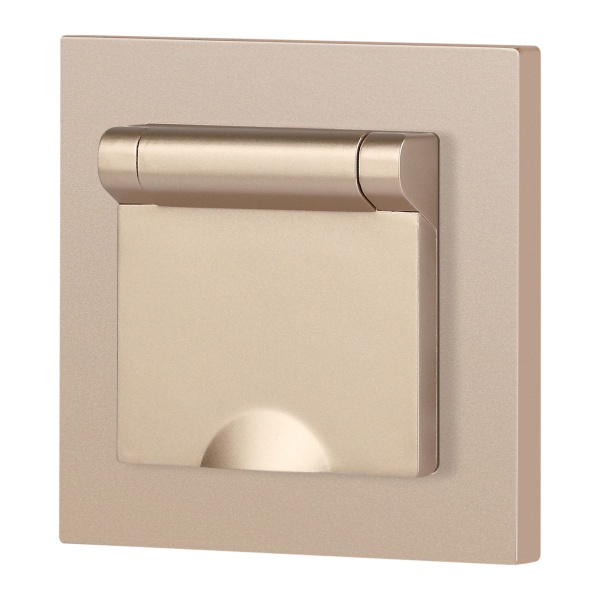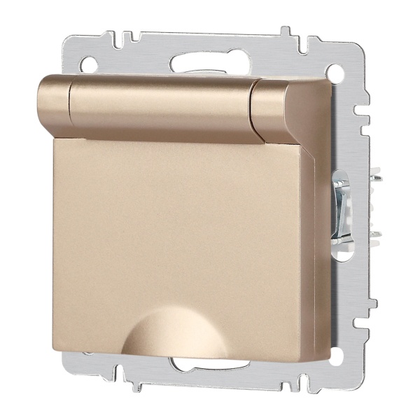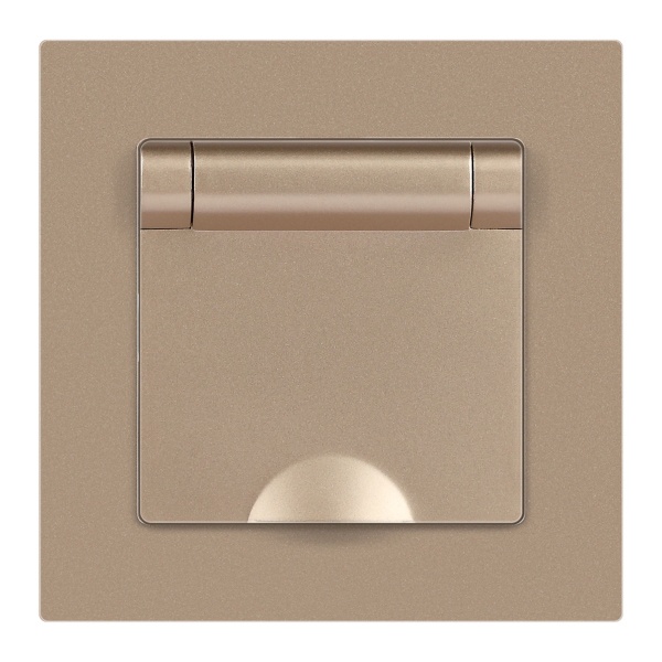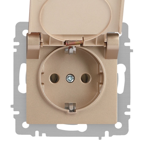 Встраиваемая электрическая розетка Интро Акцент с заземляющим контактом и крышкой, цвет шампань Б0063738