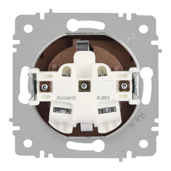 Розетка Intro Accent – надежное и безопасное решение для бытового и коммерческого использования. Выполнена из негорючего термопласта, обеспечивающего высокую устойчивость к температурным воздействиям. Оснащена винтовыми клеммами, а парные клеммы позволяют соединение шлейфом для удобного монтажа. Устанавливается в подрозетник как с помощью лапок, так и на винты, обеспечивая универсальность крепления. Соответствует европейскому типу Schuko, поддерживает напряжение 250В и силу тока 16А, что делает её совместимой с большинством электроприборов.