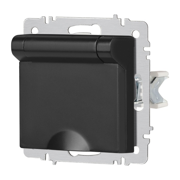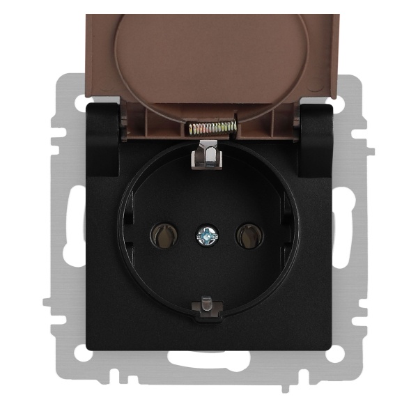 Встраиваемая электрическая розетка Интро Акцент с заземляющим контактом и крышкой, цвет антрацит Б0063747
