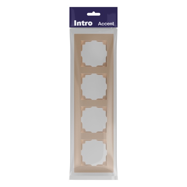 Рамка для механизмов на 4 поста Intro Accent (шампань) – это стильный и современный аксессуар, предназначенный для оформления электрических выключателей и розеток. Изготовлена из качественного материала с изысканным покрытием цвета "шампань", которое придаст интерьеру элегантность и утонченность.