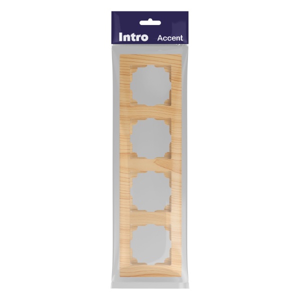 Декоративное четырехпостовое обрамление для электроустановочных механизмов скрытой установки, Интро Акцент цвет сосна Б0063771