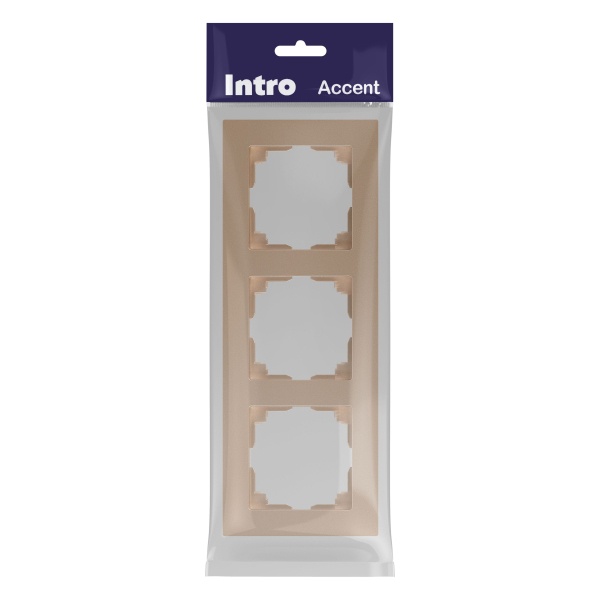 Рамка для механизмов на 3 поста Intro Accent (шампань) – это стильный и современный аксессуар, предназначенный для оформления электрических выключателей и розеток. Изготовлена из качественного материала с изысканным покрытием цвета "шампань", которое придаст интерьеру элегантность и утонченность.