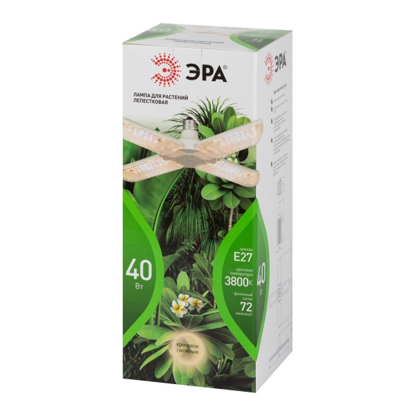Фитолампа LED мощностью 40 Ватт четырехлепестковой формы с цоколем E27 полного спектра Б0064531