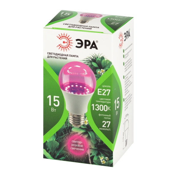 Фитолампа — это специализированное освещающее устройство, предназначенное для использования в растениеводстве. Она обеспечивает растениям качественный спектр света, способствующий их здоровью и ускоренному росту. Характеристики: мощность — 15 Вт; тип цоколя — Е27; спектр излучения — красно-синий; форма — как у обычной лампы накаливания. Оптимальное расстояние до листьев — 10-25 см. Важно: размещение лампы на высоте более 40 см снижает эффективность при выращивании растений для фитоламп аналогичной мощности. Площадь досвечивания составляет 0,4 м2.