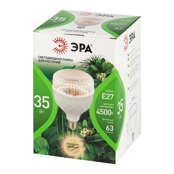 Фитолампа ЭРА GREEN LINE ФИТО-35W-PFR-E27-GR — это светодиодная лампа полного спектра, предназначенная для продления светового дня и стимуляции фотосинтеза. Она идеально подходит для освещения растений в домашних условиях, теплицах, оранжереях и других местах, где необходима дополнительная подсветка.