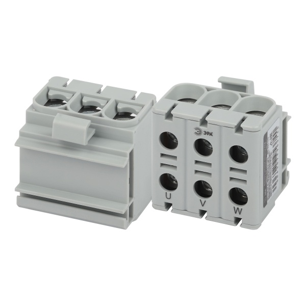 Клеммы силовые вводные КСВ ЭРА — это надежные клеммные винтовые зажимы, изготовленные из алюминия и заключённые в компактный корпус из диэлектрического, негорючего пластика. Они предназначены для организации ввода, распределения и соединения проводников большого сечения (от 6 до 240 мм2) внутри электротехнических шкафов, щитов, а также для подключения промышленного оборудования в цепях переменного или постоянного тока с номинальным напряжением до 800 В.