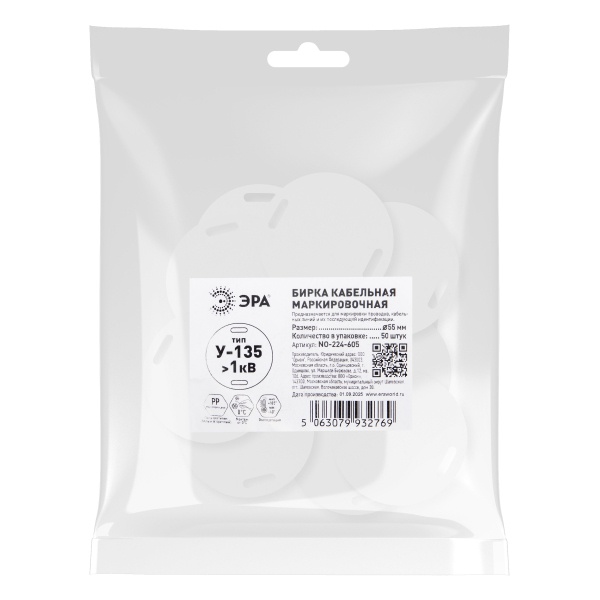 Бирки кабельные маркировочные, круг диаметром 55 мм Б0066686