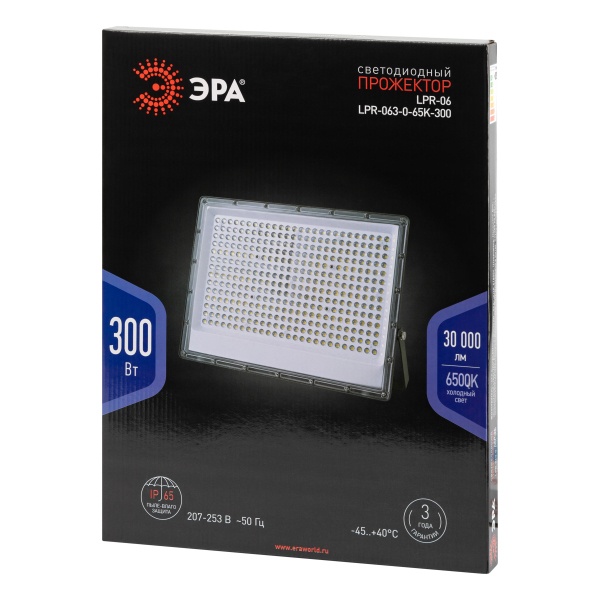 Б0067715 Прожектор светодиодный ЭРА PRO LPR-063-0-65K-300 300W 6500K 30000Lm IP65 черный корпус алюминий