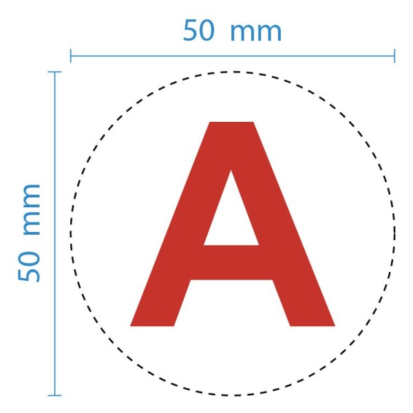 Самоклеящаяся этикетка 50Х50 мм «А» предназначена для маркировки светильников, используемых в системах аварийного освещения.