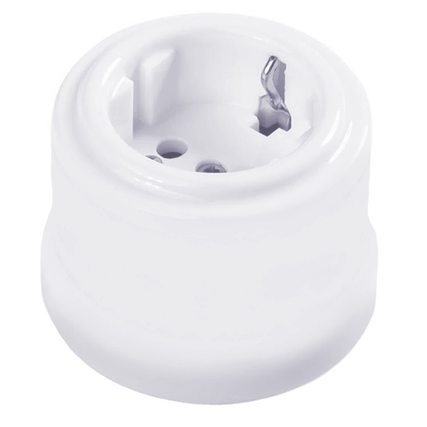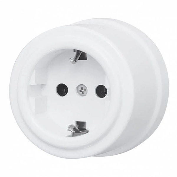 Электрическая внешняя белая ретро розетка Бирони одинарная силовая 16А электросети 220В IP20 открытой установки на стену B1-101-21