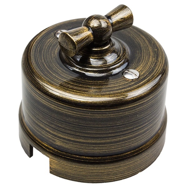 Настенный одноклавишный электрический выключатель промежуточный поворотный ретро бронза Бирони IP20 открытой установки B1-203-25
