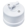 Пластиковый одноклавишный проходной ретро выключатель накладного исполнения, белого цвета, Бирони серия Лизетта. B1-221-21