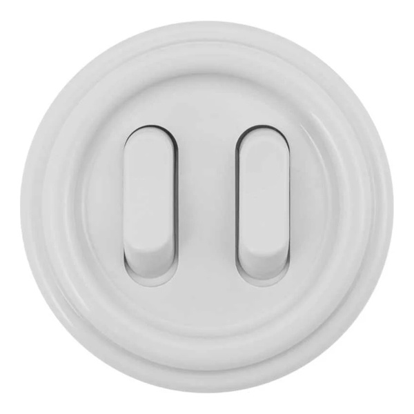 Пластиковый двухклавишный ретро выключатель без фиксации накладного исполнения, белого цвета, Бирони серия Лизетта. B1-222-21-PB