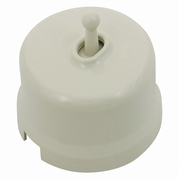 Пластиковый однотумблерный проходной ретро выключатель накладного исполнения, бежевого цвета, Бирони Лизетта B1-231-211