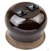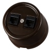 Фарфоровая двухместная информационная ретро розетка RJ45 категории 5е, накладного исполнения, коричневого цвета, Бирони серия Лизетта. B1-302-02
