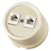 Фарфоровая двухместная информационная ретро розетка RJ45 категории 5е, накладного исполнения, цвета песочное золото, Бирони Лизетта Декор B1-302-04