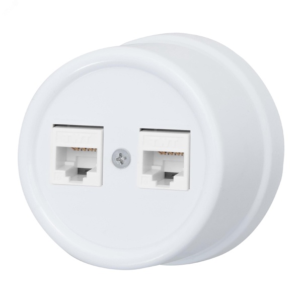 Внешняя сетевая белая ретро розетка RJ-45 UTP двойная Бирони для интернета открытой установки на стену B1-302-21