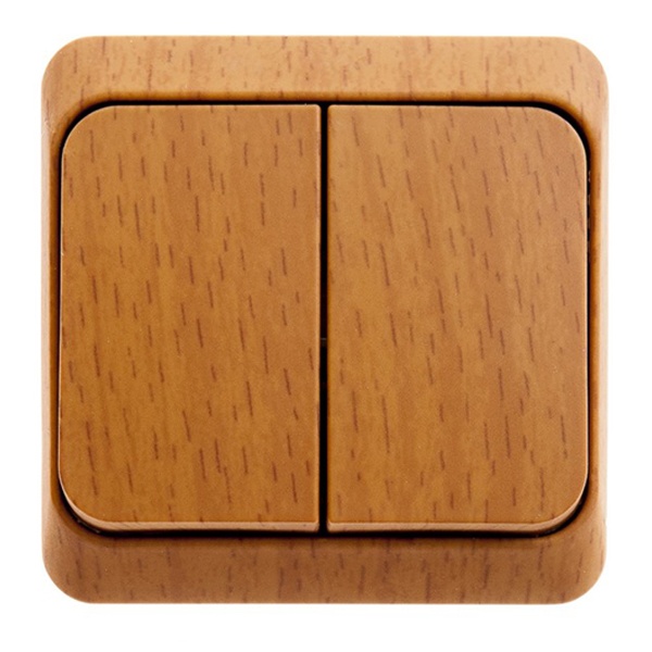 Выключатель Schneider Electric ЭТЮД (бук, открытой установки) двухклавишный предназначен для применения в сетях до 250В, на ток до 10А. Две клавиши позволяют управлять двумя источниками света с одной точки. Изделия цвета Бук обладают уникальным рисунком, напоминающим древесный сруб. Он прост в установке и удобен применении. Сделано в России.