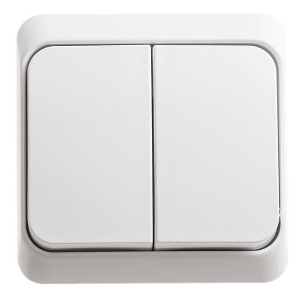 Настенный 2-клавишный электрический выключатель с индикацией белый Cистем IP20 открытой установки BA10-006B