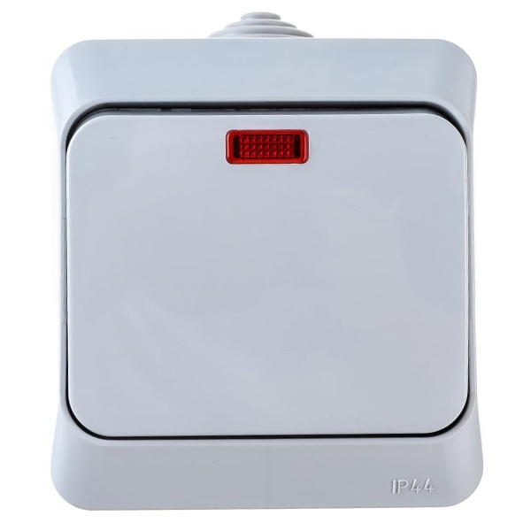 Выключатель Schneider Electric ЭТЮД (серый, открытой установки) одноклавишный, с подсветкой и предназначен для применения в сетях до 250В, на ток до 10А, что делает его легко находимым при отсутствии освещения. Он удобен в применении и отлично подходит для ванной комнаты (IP44). Сделано в России.