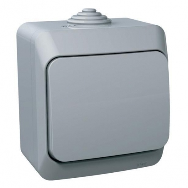 Переключатель Schneider Electric ЭТЮД (серый, открытой установки) одноклавишный предназначен для применения в сетях до 250В, на ток до 10А. Переключатель позволяет управлять одним источником света из двух точек. Сделано в России.