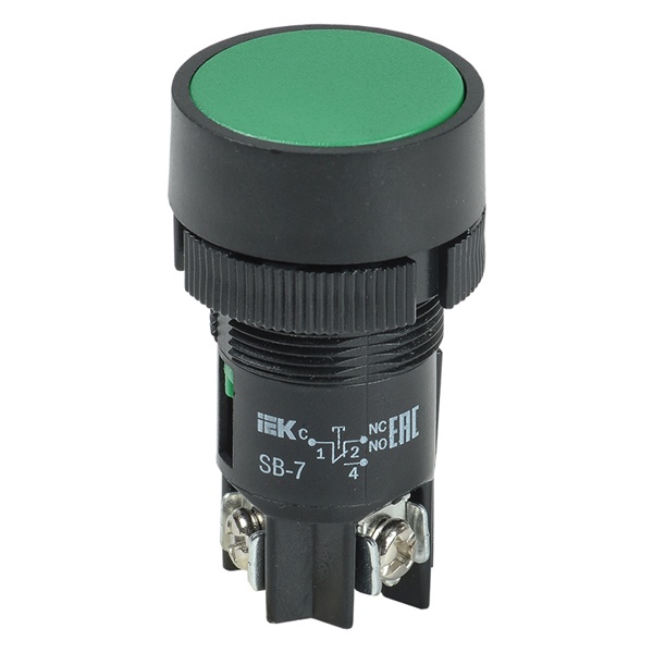 Кнопка управления SB-7 «Пуск» (зеленая) d22 мм/230В IEK 1Н.О.+1Н.З. BBT40-SB7-K06