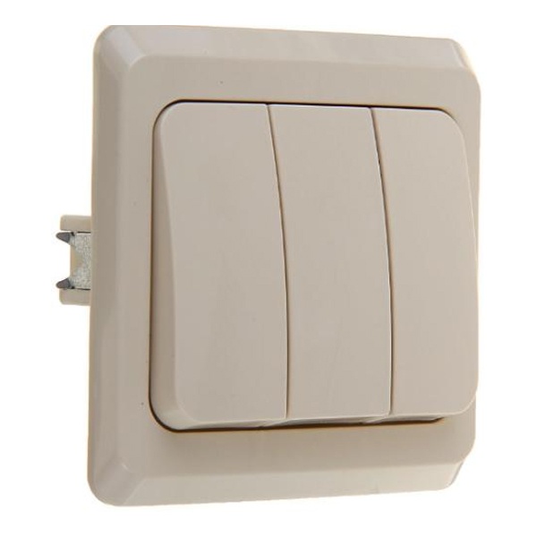 Трехклавишный выключатель кремового цвета для скрытого монтажа, Этюд BC10-003K