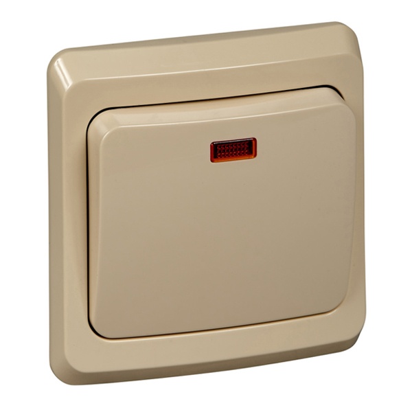 Одноклавишный выключатель кремового цвета с индикацией, для скрытого монтажа, Этюд BC10-005K
