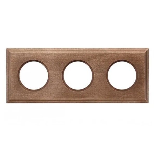 Трехпостовое обрамление из дерева прямоугольной формы для монтажа на бревно диаметром 200 мм, для электроустановочных механизмов Бирони, коллекция Шедель, цвет темное дерево BF4C20-630-18