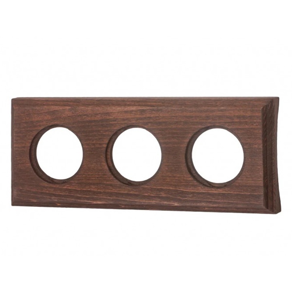 Трехпостовое обрамление из дерева прямоугольной формы для монтажа на бревно диаметром 240 мм, для электроустановочных механизмов Бирони, коллекция Шедель, цвет темное дерево BF4C24-630-18