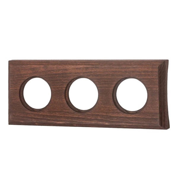 Трехпостовое обрамление из дерева прямоугольной формы для монтажа на бревно диаметром 260 мм, для электроустановочных механизмов Бирони, коллекция Шедель, цвет темное дерево BF4C26-630-18