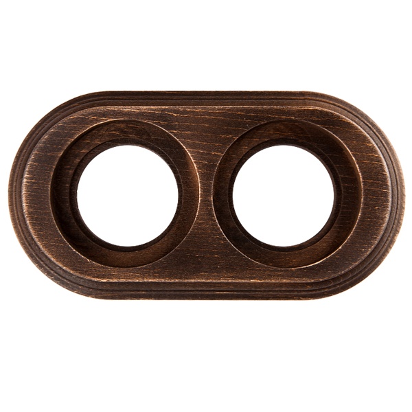 Двухпостовое обрамление из дерева круглой формы для накладного монтажа на бревно диаметром 300 мм, для электроустановочных механизмов Бирони, коллекция Лизетта, цвет темное дерево BFC30-620-17
