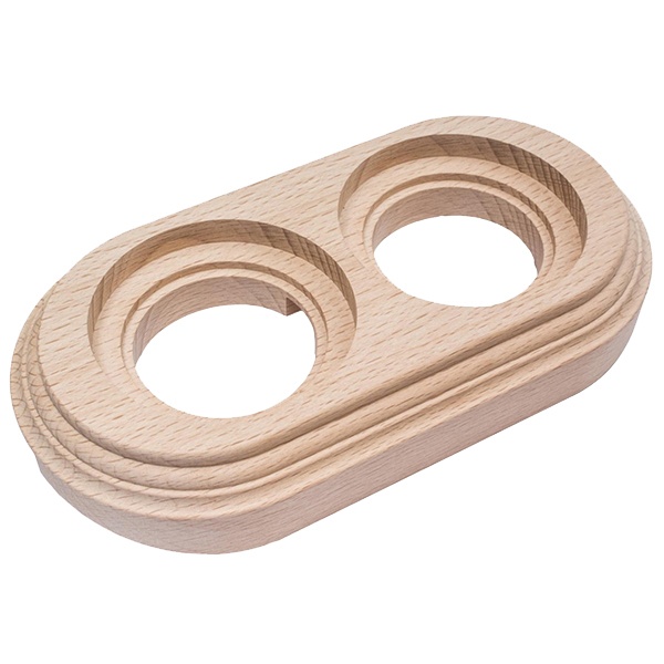 Двухпостовое обрамление из дерева круглой формы для накладного монтажа на бревно диаметром 320 мм, для электроустановочных механизмов Бирони, коллекция Лизетта, цвет натуральное дерево BFC32-620-10