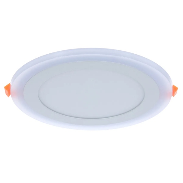 Встраиваемый белый круглый тонкий LED светильник Гаусс Бэклайт с подсветкой, мощностью 12Вт+4Вт, теплый белый свет. BL118