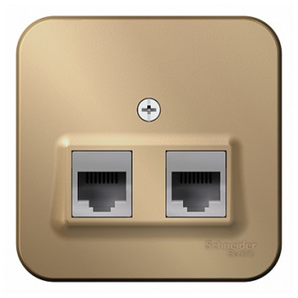 Двойная розетка RJ11 + RJ45 cat.5e накладного монтажа (открытой установки) с изолирующей пластиной, Систем Электрик Бланка, цвет титан BLNIA045114
