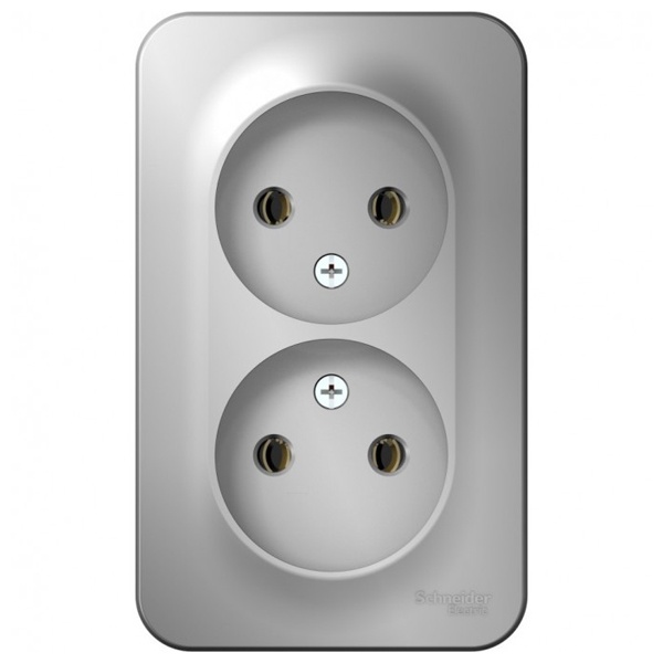 Розетка SE BLANCA (алюминий, открытой установки) двухместная, без шторок и заземления предназначена для сетей до 250В, на ток до 16А. Двухместная розетка позволяет подключить два устройства в одном месте. Она изготовлена из ABS-пластика, проста в установке и удобна в применении.
