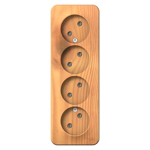 Электрическая внешняя под дерево ясень розетка Систем четверная силовая 16А электросети 220В IP20 открытой установки на стену BLNRA000415
