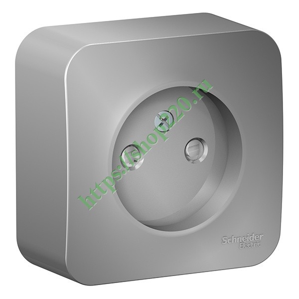 Розетка открытой установки без заземляющего контакта, с защитными шторками, 16 Ампер, 250 Вольт, Систем Электрик Бланка, цвет алюминий BLNRA001103