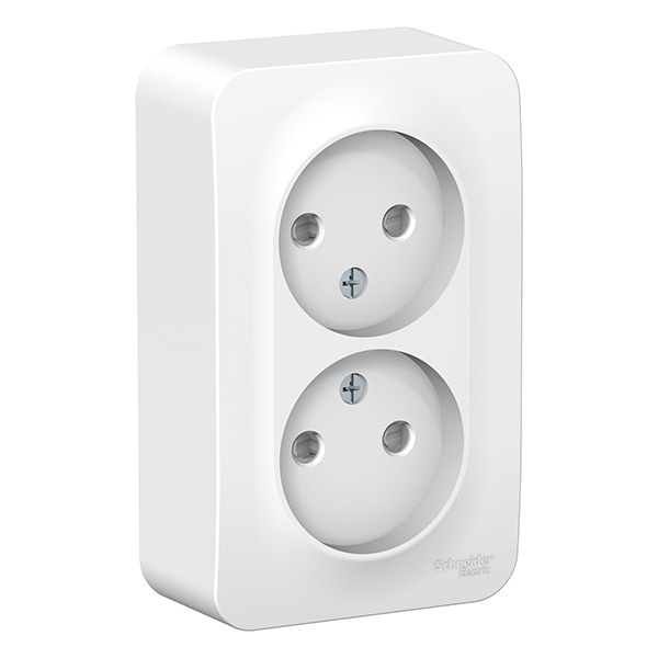 Двойная розетка накладного монтажа без заземляющего контакта, со шторками 16 Ампер, 250 Вольт, Систем Электрик Бланка, белого цвета BLNRA001201
