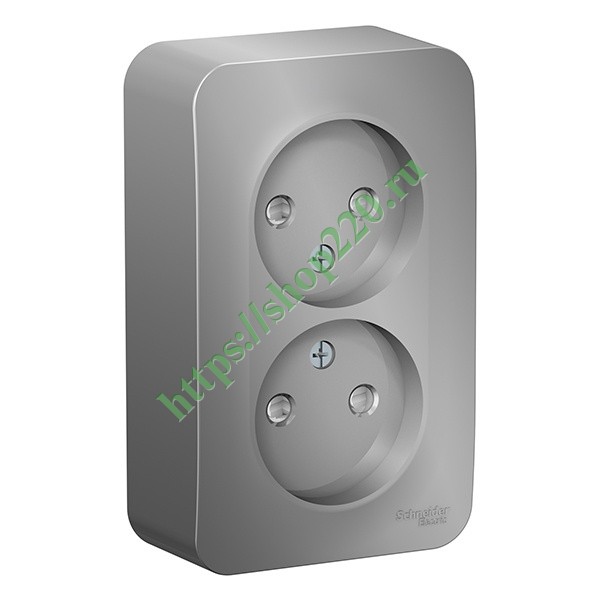 Двойная розетка открытой установки без заземляющего контакта, с защитными шторками, 16 Ампер, 250 Вольт, Систем Электрик Бланка, цвет алюминий BLNRA001203