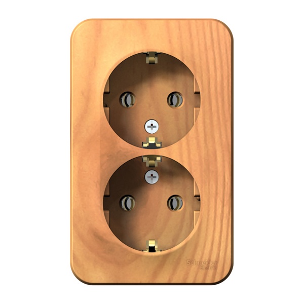 Электрическая внешняя под дерево ясень розетка Систем двойная силовая 16А электросети 220В IP20 открытой установки на стену BLNRA010205