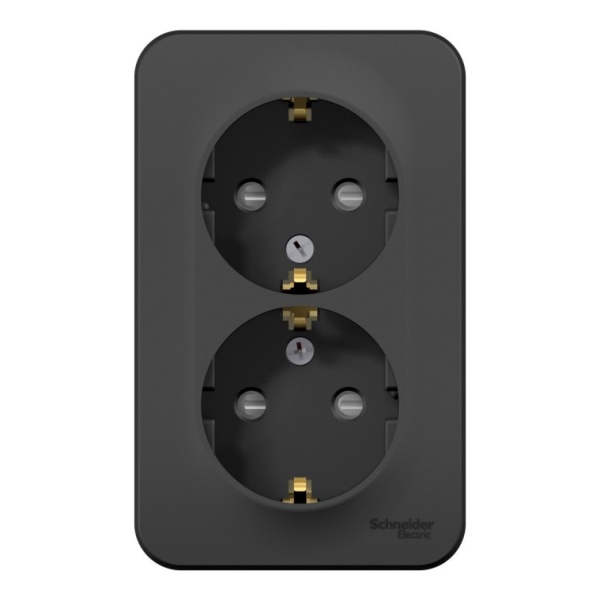 BLANCA О/У РОЗЕТКА двойная с заземлением без шторок, 16А, 250В, АНТРАЦИТ