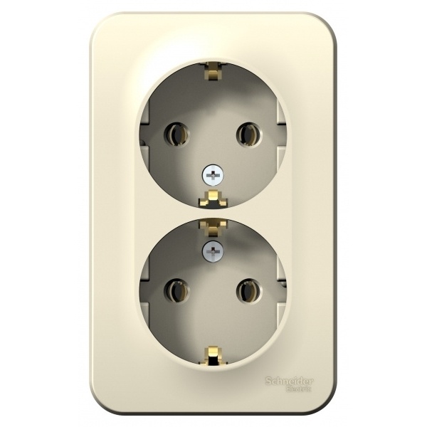 Электрическая внешняя кремовая розетка Систем двойная силовая 16А электросети 220В IP20 открытой установки на стену BLNRA010212