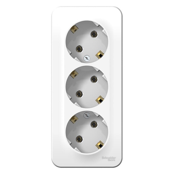 Розетка SE BLANCA (белый, открытой установки) трехместная, без шторок, с заземлением и изолирующей пластиной предназначена для сетей до 250В, на ток до 16А. Трехместная розетка позволяет подключить три устройства в одном месте. Заземление обеспечивает безопасность при косвенном прикосновении. Она изготовлена из ABS-пластика, проста в установке и удобна в применении.