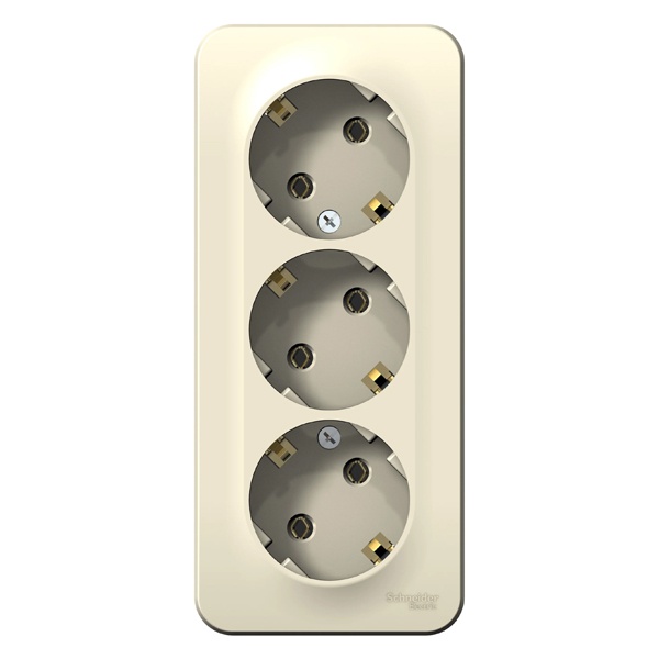 Электрическая внешняя кремовая розетка Систем тройная силовая 16А электросети 220В IP20 открытой установки на стену BLNRA010312